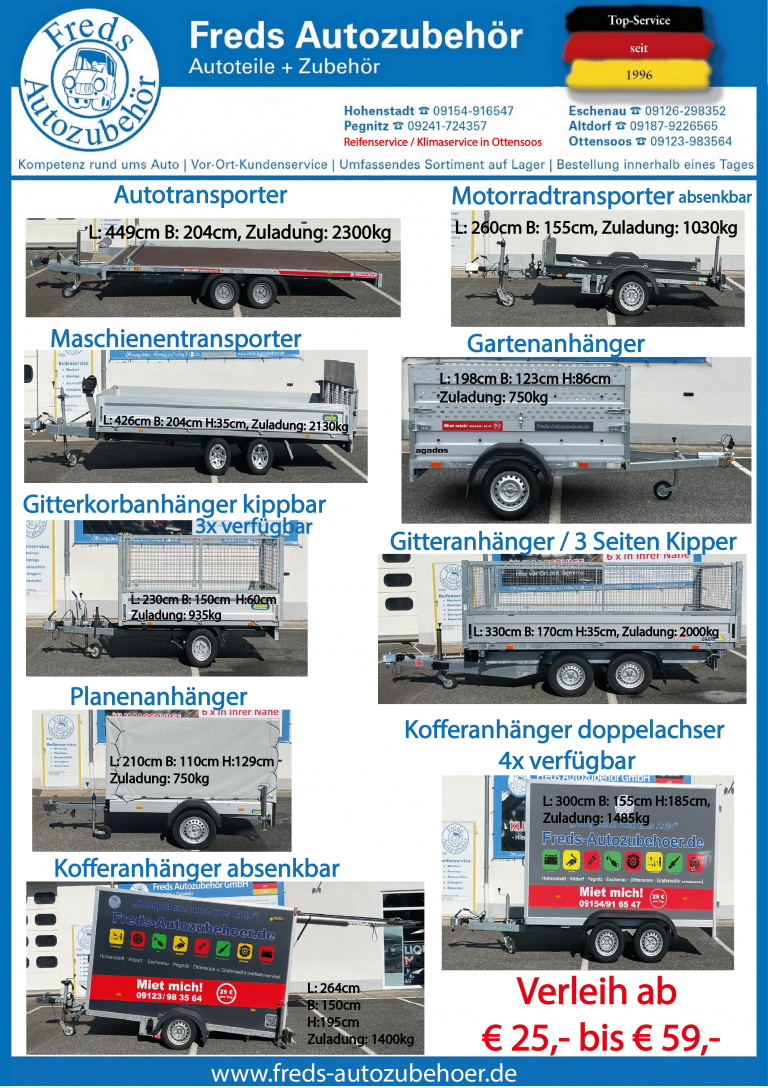 Zuverlässig, gepflegt und zu fairen Preisen – einfach reservieren, anhängen und losfahren!